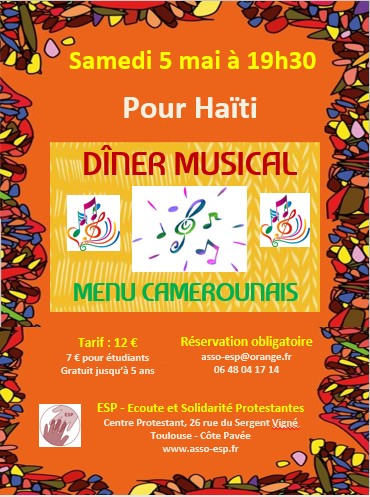 Concert humanitaire ESP Repas humanitaire Haïti musique soirée toulouse